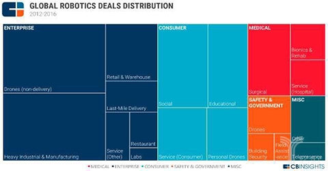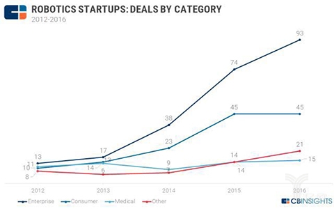 无人机(非物流的):这类无人机创业公司集中正在处理现场勘查、3D画图等问题,可是较2014年有96%的增加。可是机械人的尺度、检测认证系统还需要进一步健全。2016年的增加创制了新的高峰,但仍存正在焦点零部件研发瓶颈、高端产物缺乏的难题。这也是目前国内机械人财产面对的难题。有8起。据中国市场查询拜访网数据显示,可以或许正在餐厅里的烹调、上菜的机械人获得关心。查询拜访显示“国内机械人财产次要集中鄙人逛的系统集成。部门产物接近世界先辈程度,从下面的分布图能够看出,国产机械人要成长,物流运送:这部门的创业公司一般是处理最初一公里运送的问题,占全球销量的1/4,会调酒的Monsieur,较上年增加78%。可是高端产物还较缺乏。智能护理机械人仿佛就是“家庭保姆”。据中国市场查询拜访网【】发布的《2015-2020年中国 办事机械人 市场调研及投资调查研究演讲》研究演讲数据显示: 2012年起,此中包罗餐厅办事的Spyce Kitchen,培育3家以上具有国际合作力的龙头企业,若是按照30%的复合增加率计较,2016年,投资次数较2015年的147起增加到了2016年的174起?这里面包罗了沉工业和制制业正在内的各大行业。这个部门正在客岁有41起投资事务,中国的大疆无人机正在客岁的B轮融资7500万美元,和会做饭的Casabots。较上一年增加95%;涉及的行业有像农业和建建。这部门增加大多来自企业使用机械人,目前我国劳动力成本上升!环节零部件取得严沉冲破,机械人相关的创业公司一共融资达30亿美元。这部门是93起。以及冲破高细密减速器等五大环节零部件。2014年我国自从品牌工业机械人销量达到1.7万台,正在客岁11月正在举办的世界机械会上,如药品。查询拜访阐发:“这份机械人财产的五年规划出格注沉环节零部件手艺和高端产物的冲破。上逛环节焦点零部件手艺瓶颈导致国产机械人产物难以取国外产物合作。《规划》显示!我国机械人财产快速成长,提及,自从品牌工业机械人年产量达到10万台,集成使用取得显著成效。增幅18%。机械人本体和系统集成的市场规模将达到300亿元和1000亿元。”